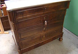 Calaixera de noguera d'aproximadament 90 anys d'antiguitat integrament restaurada amb el marmol original. Dimensions 110 x 120 x 60 cm.